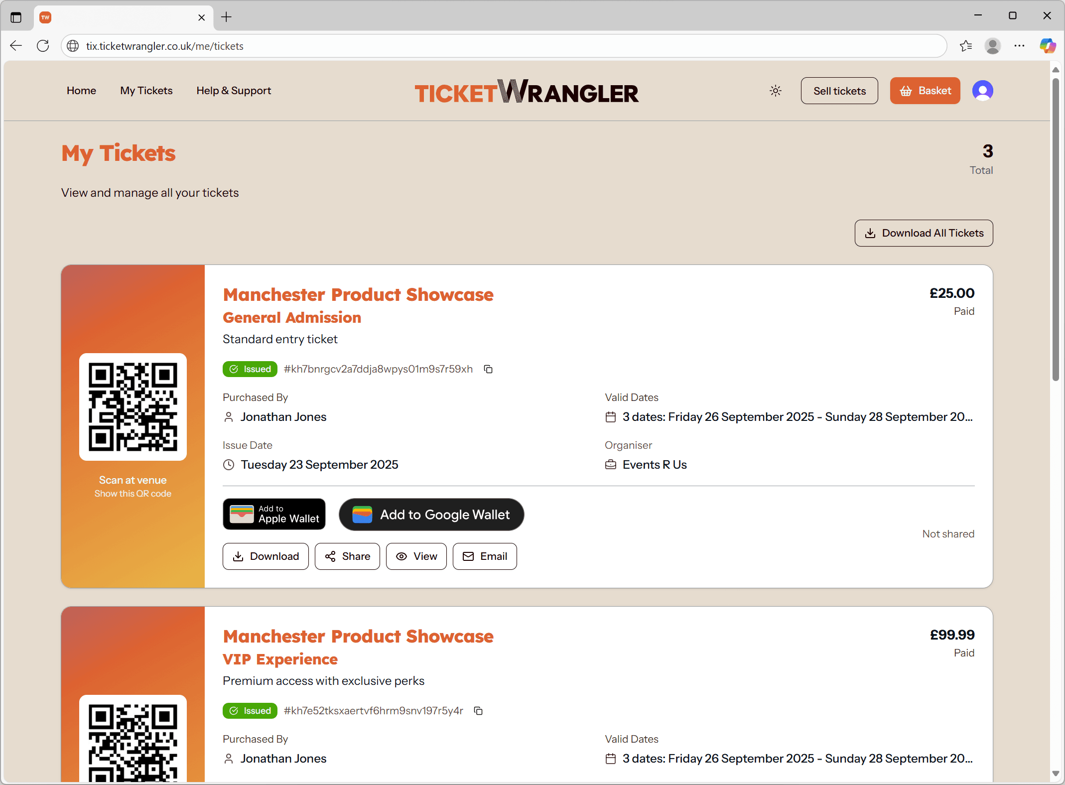 Tickets are emailed to you as soon as you place your order. Can’t find them? Search your inbox for 'Ticket Wrangler' or check your spam folder just in case.