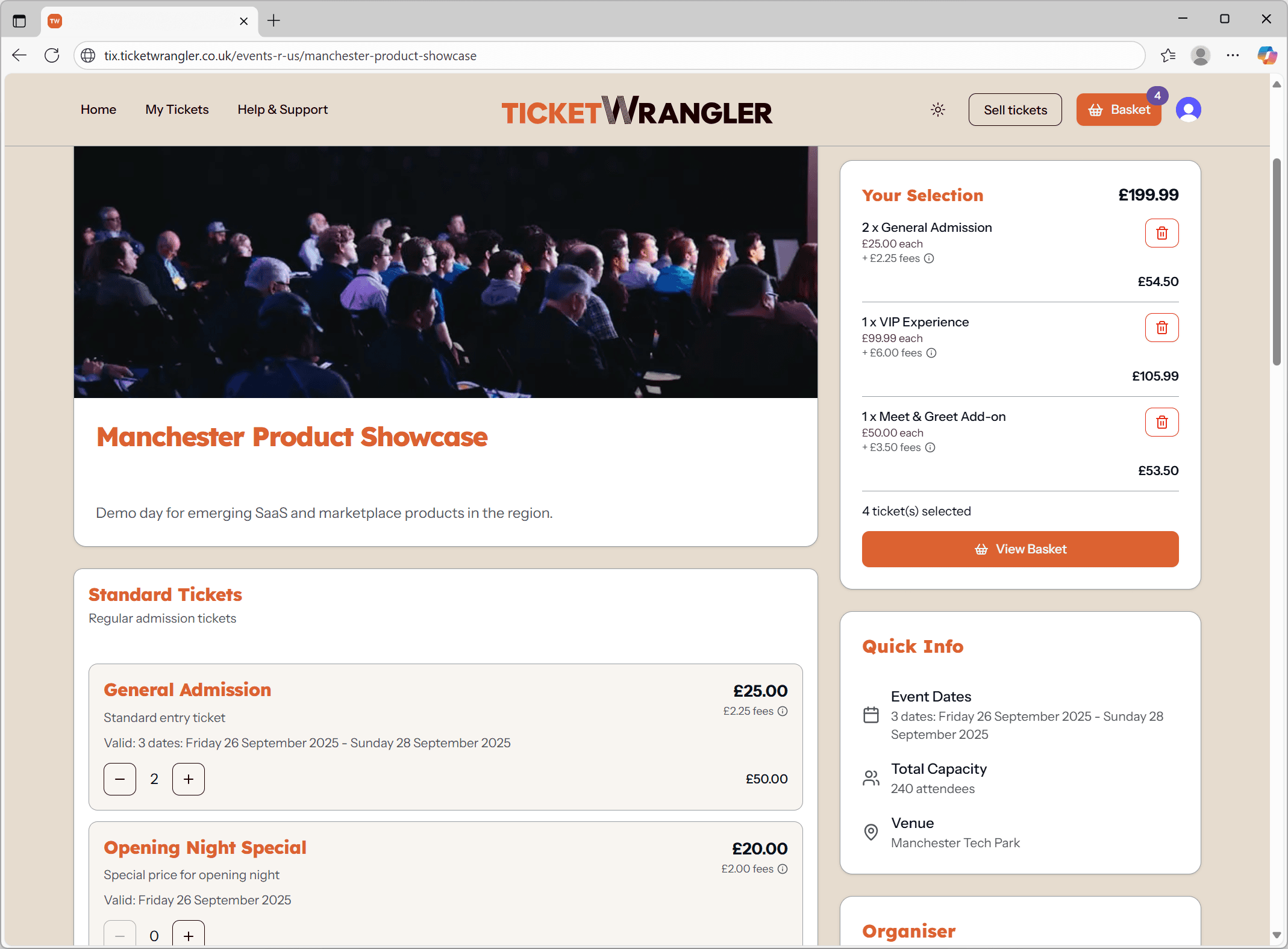 Ticket Wrangler is built to give organisers more control and better value — no hidden marketing, no bloated features, and no surprise fees. It’s fast, fair, and made with independent events in mind.